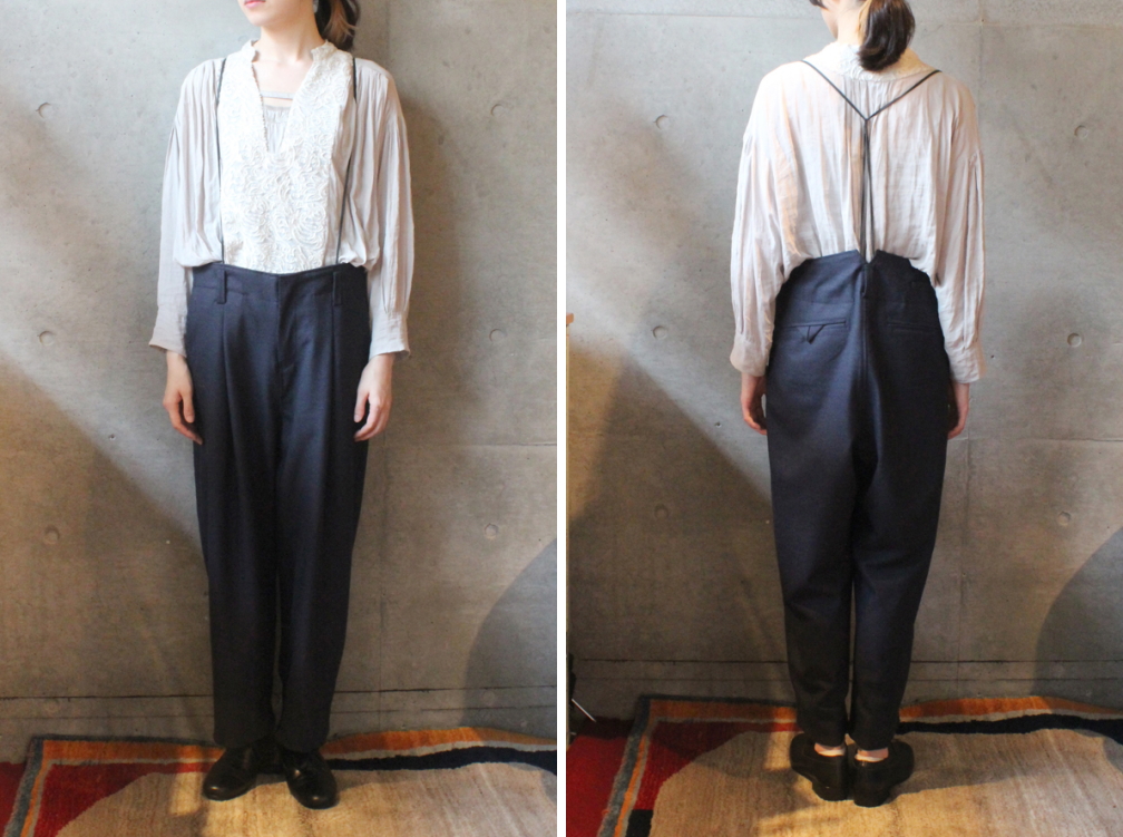 サスペンダーをたらして穿いても◎。 取り外しも可能です。