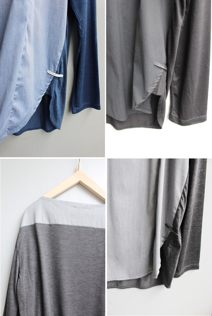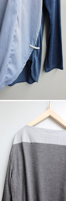 素材:60/2テンセルキュプラ天竺 (テンセル70%・キュプラ30%) 別布:ストレッチブロード (綿63%・ナイロン32%・ポリウレタン5%)