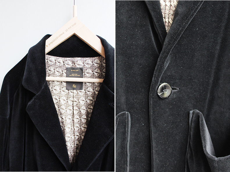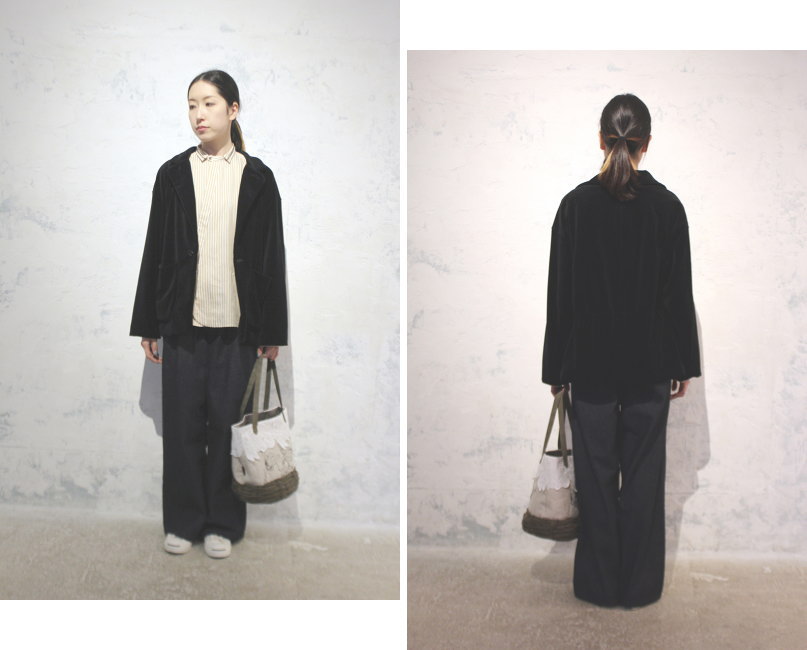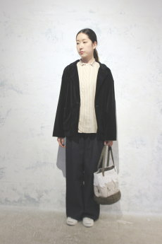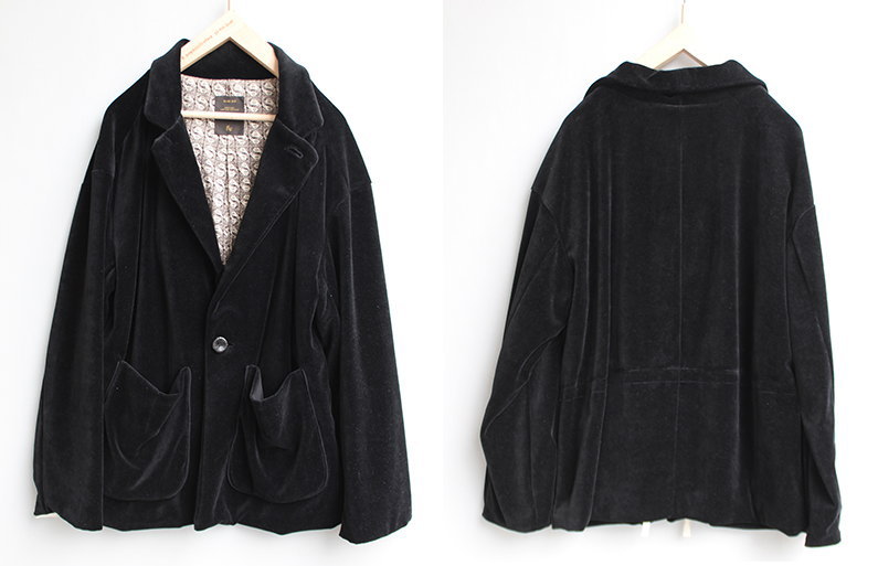 ベロア素材のゆったりとしたジャケット。 太めのお袖、やわらかい衿周りでかっちりしすぎず、 ほどよいルーズ感が可愛いジャケットです。