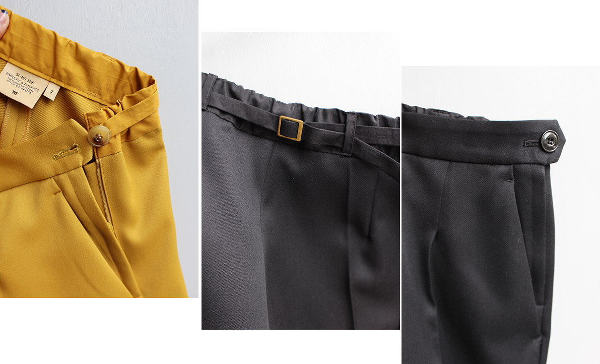 サイドでボタン+ファスナー開きのつくりです。 オケージョンシーンにも大活躍♪